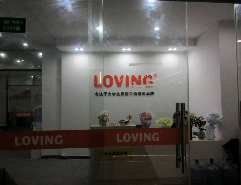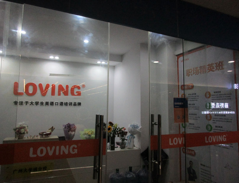 贝岗商业城内东南侧楼梯上二楼右转 商业楼东南角区 最近看到新开了一家叫LOVING的应该是做英语口语培训方面的