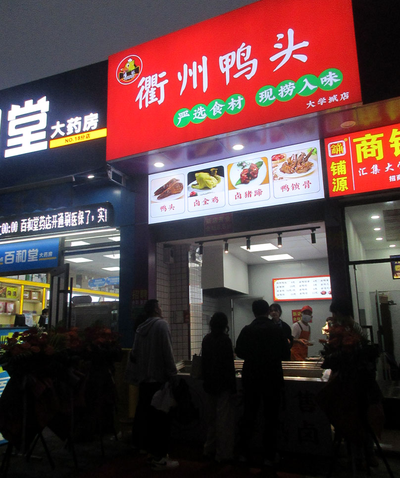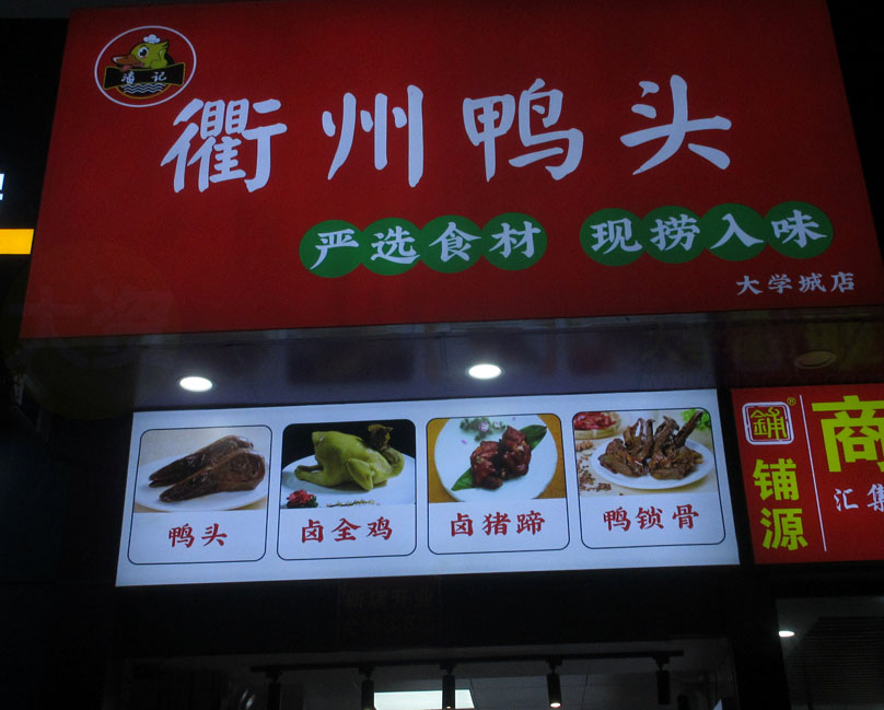 贝南大街中位约 很快看到新开了一家叫衢州鸭头的卤味食店 除了鸭头外 还有全鸡 猪蹄 鸭锁骨等 是不是有点像绝味鸭脖栖头鸭之类的,可能又不完全像