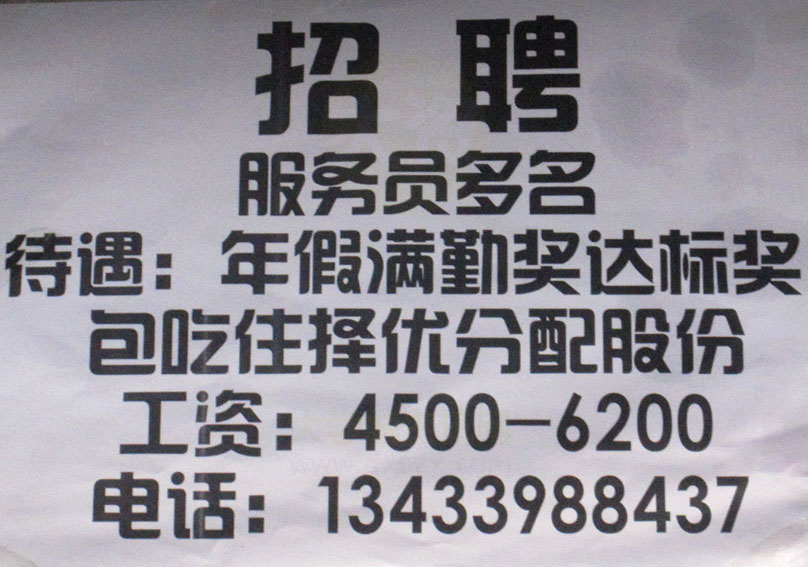 | 贝岗 招聘服务员多名 工资4500-6200 电话13433988437 | ||||||