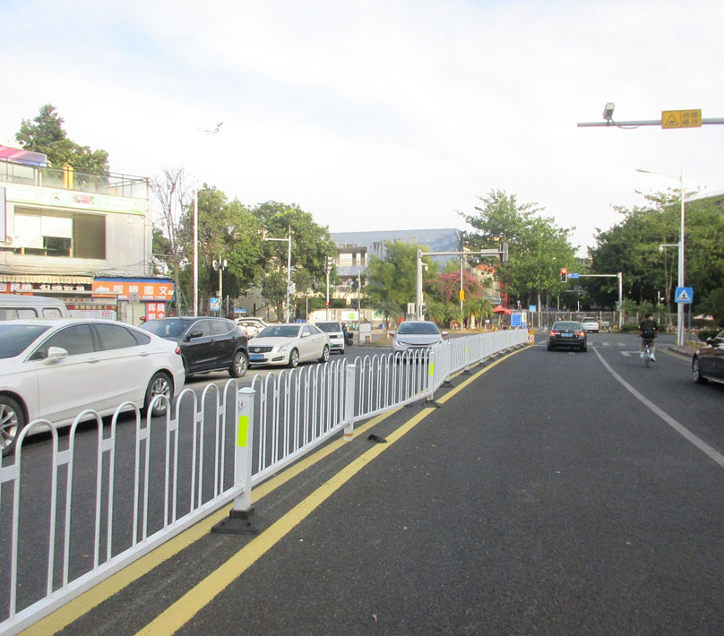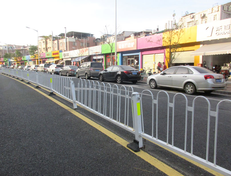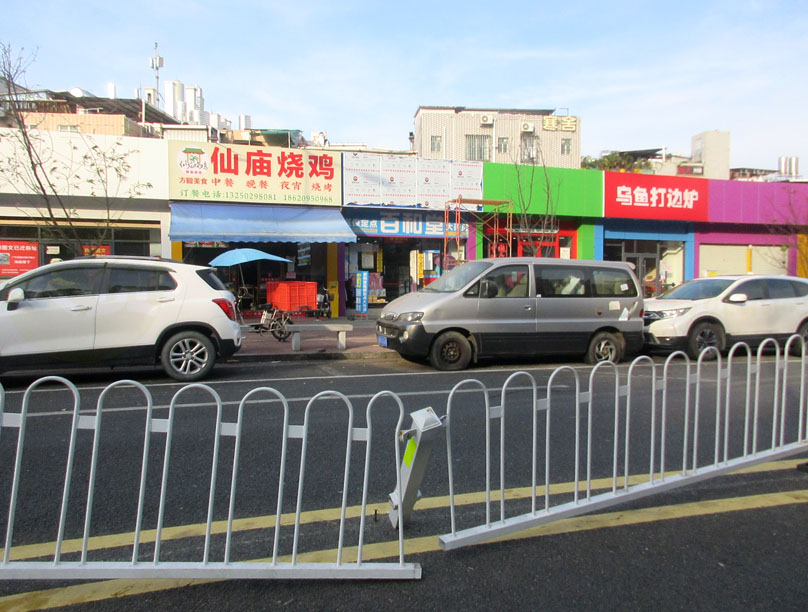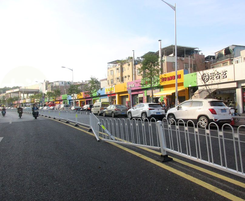 贝南大街这一段路中隔栏似乎有几处看到有不同程度的被撞坏损