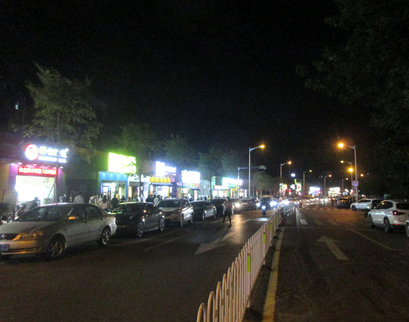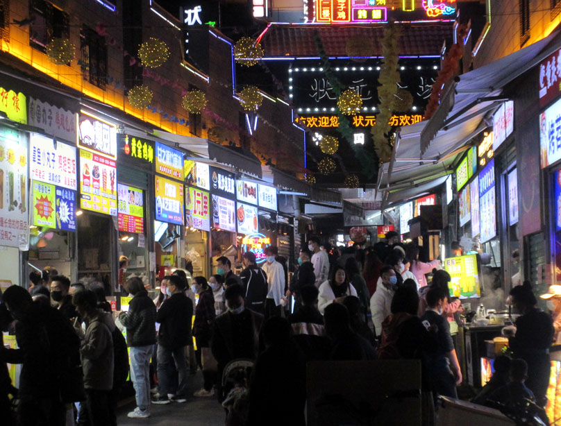 元旦节日这天傍晚,贝岗大街西和状元食坊入坡道 看到还是人挺不少,也算是比较难得了,毕竟很多学校学生都在近一个月前就放假了