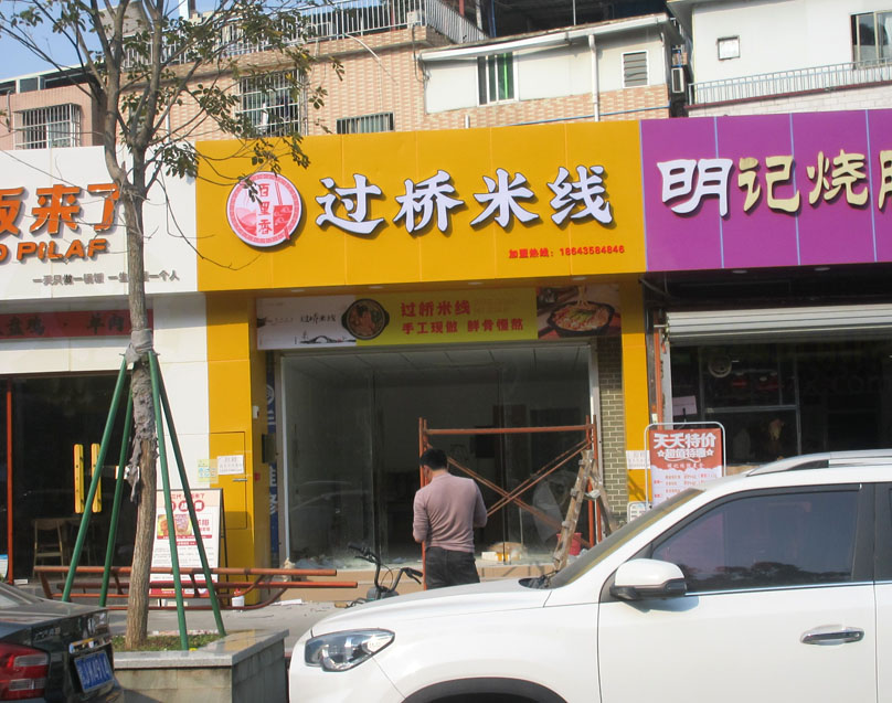 | 早几天就看到已经在装修的贝岗大街偏东 明记烧腊旁这家新店 是叫百里香过桥米线 目前看到也还没马上或已装修好的 | ||||||