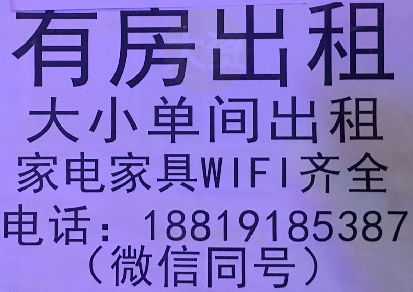| 有房出租 大小单间出租 家电家具WIFI齐全 电话:18819185387(微信同号) | ||||||
