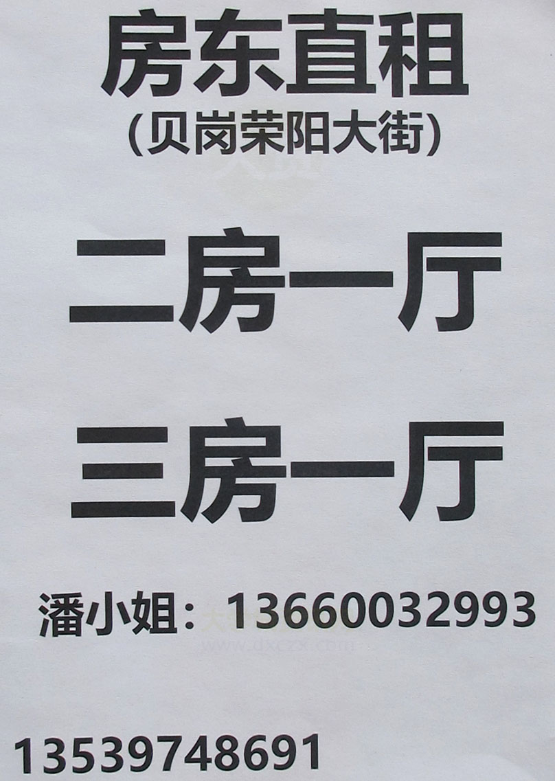 | 贝岗村-荣阳大街 房东直租 二房一厅 三房一厅 联系-潘小姐:13660032993 13539748691 | ||||||