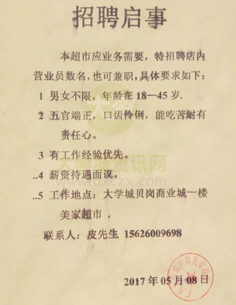 | 美家超市招聘启事 | ||||||