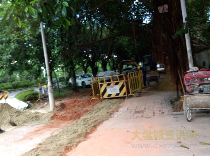 贝岗村牌坊外中环辅道电力施工--最近大学城似乎又在进行新一轮电力施工升级啊,暑假之际再次提升大学城的整体电力供应,毕竟大学城越来越完善各种配备都要跟得上和相适应