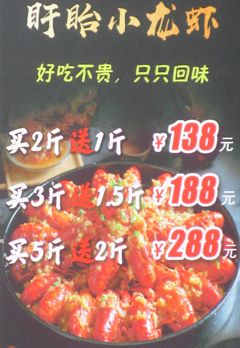 | 北亭临中环村口 厕所串串 盱眙小龙虾 买2斤送1斤138元 买3斤送1.5斤188元 买5斤送2斤288元 平均到相当于40块钱多一斤 | ||||||