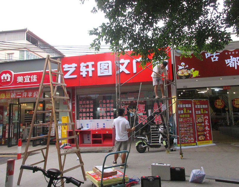 北亭村口-已经新装好招牌的艺轩图文是不是再装个棚盖挡布什么的