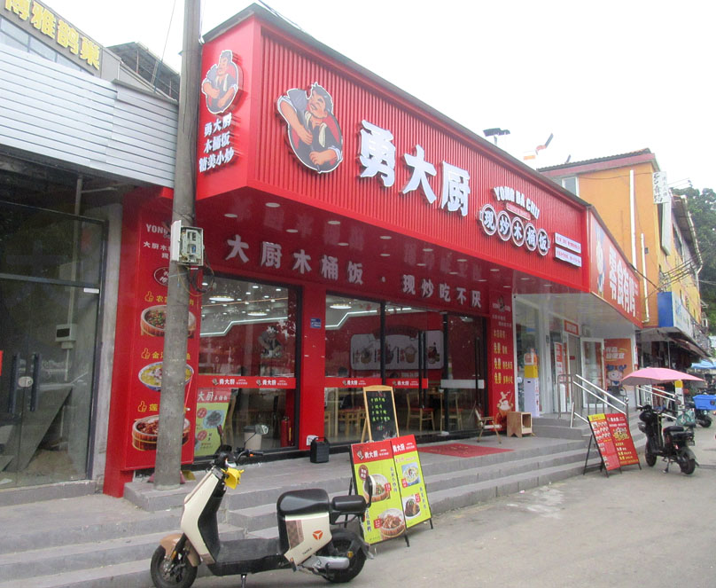 北亭东道/博凌大街南 近日看到也同样开了一家叫勇大厨的餐饮店/餐厅/饭馆 稍早前,在较远另一侧的北亭大街北近尾端 原农商行铺位 也是新开业了一家勇大厨 目前看到,两个店大小体量似乎接近相当,看着较大概率是不是同一个店主在村内不同地段开的同一家店