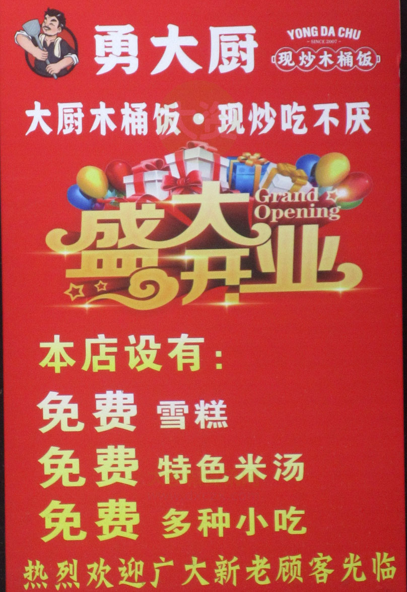 | 北亭东道/博凌大街南 近日看到也同样开了一家叫勇大厨的餐饮店/餐厅/饭馆 | ||||||