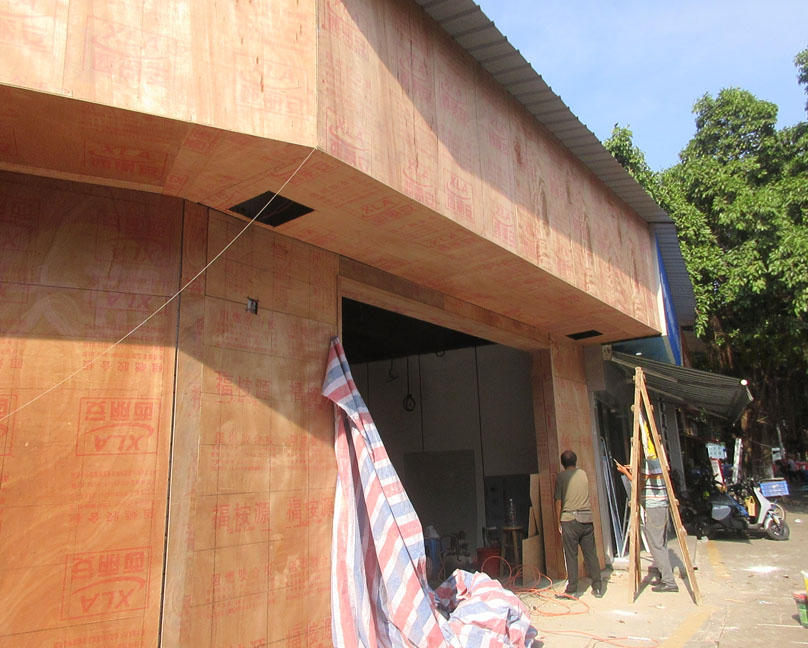 | 北亭临中环高架桥转弯处这家在装修的两个连铺位店 看到外观门面已有些棱角形状了 不过,看着要装好完全也还得将近一个月吧 | ||||||