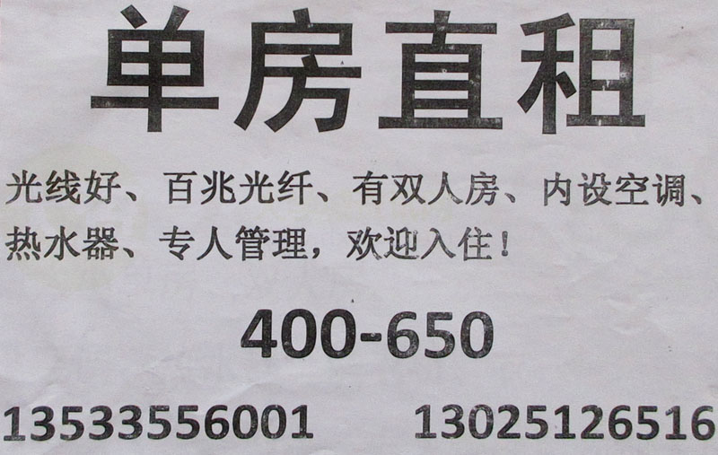 | 单房直租 光线好、百兆光纤、有双人房、内设空调、热水器、专人管理,欢迎入住!400-650 | ||||||