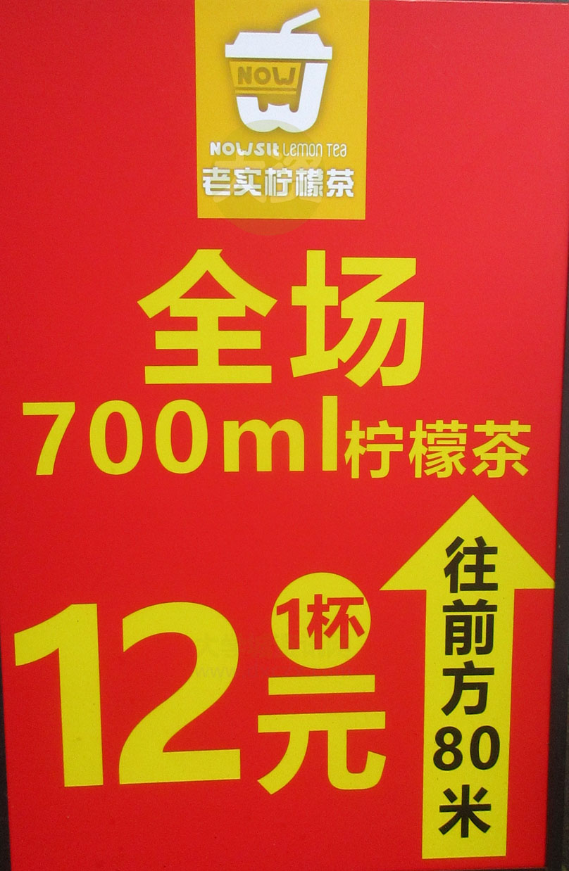 | 北亭村临中环村口转弯处 NOWSIt 老实柠檬茶 700ml柠檬茶全场12元1杯 | ||||||