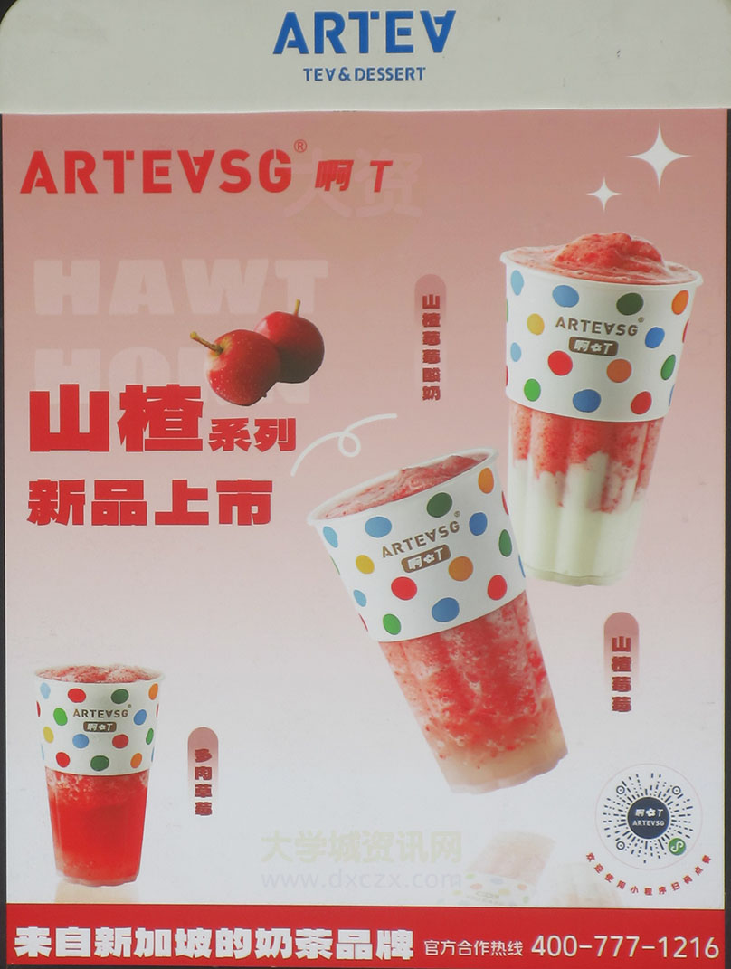 | 北亭临中环村口&咏凤二街 ARTEASG新加坡奶茶店 山楂草莓系列新品 | ||||||