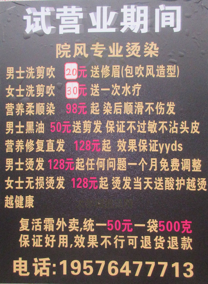 北亭村-北亭东道南 最近似乎新开了家叫院风的小间理发烫染造型店