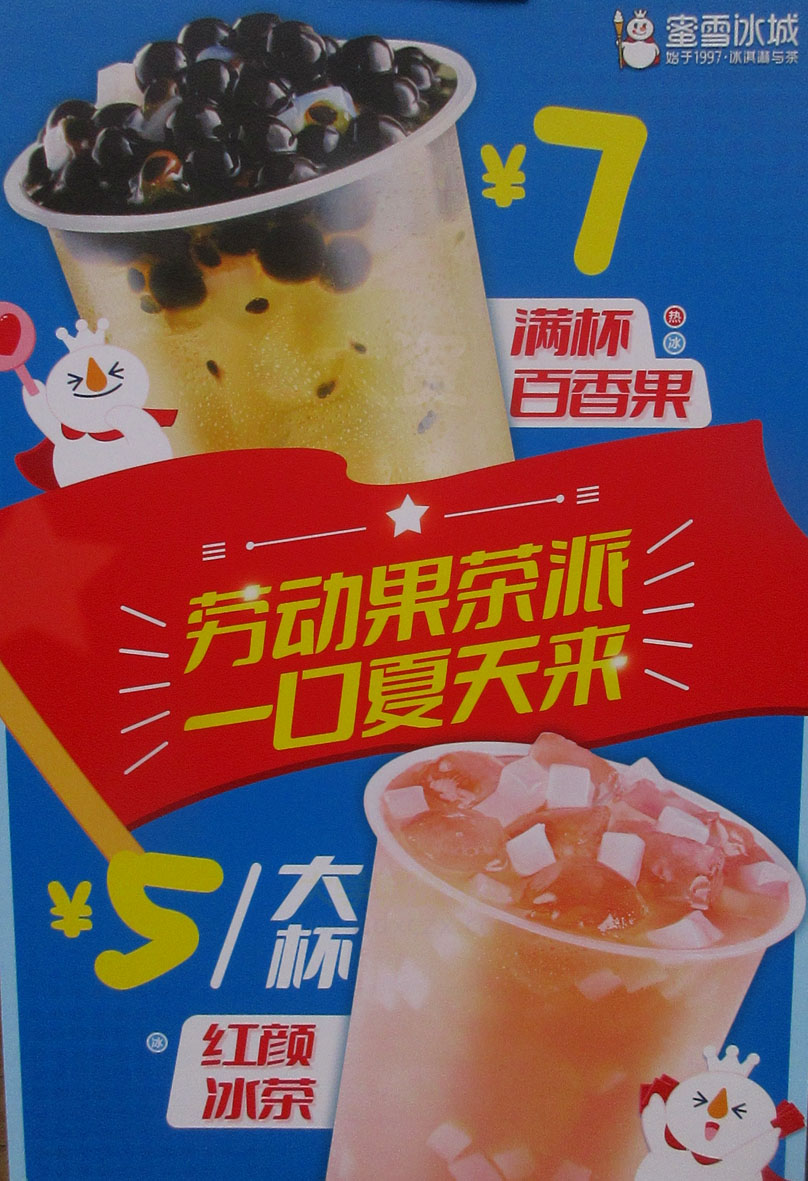| 八号楼西侧外列店北-蜜雪冰城·劳动果茶派一口夏天来 满杯百香果7元 大杯红颜冰茶5元 | ||||||