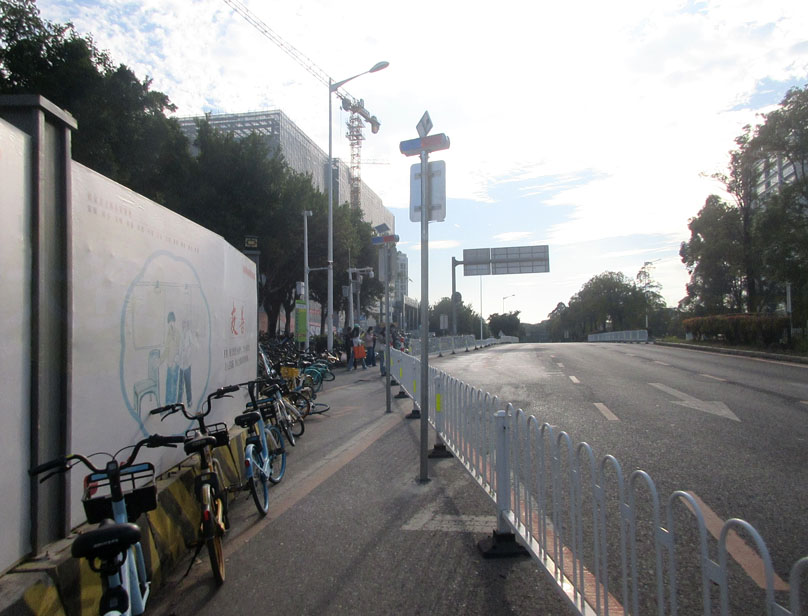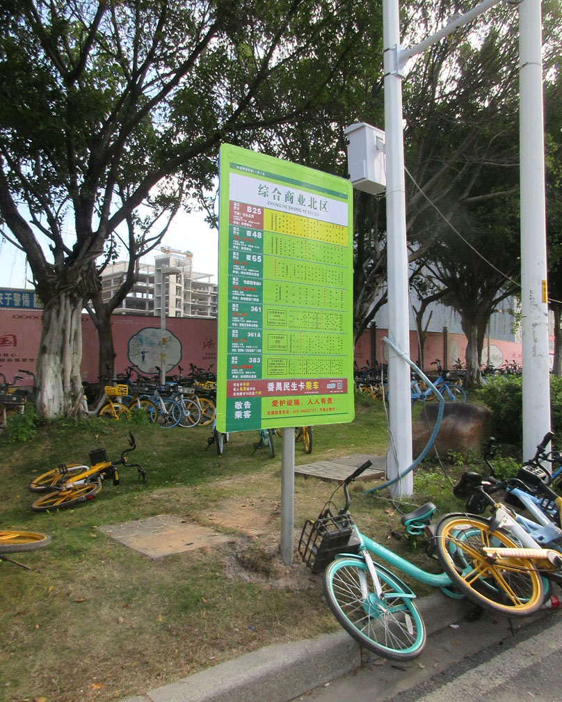 | 北区中环内侧公交站由于先前地铁施工围隔出来后 西侧旁边的临时等车点已经安装上一个临时单立式站牌以便乘客视看 | ||||||