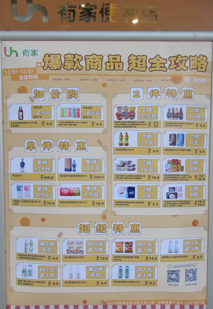 | 北区-创智园1栋南列东 有家便利店 爆款商品,超全攻略 加价购、单件特惠、两件特惠、超级特惠 活动时间12.01-12.31 | ||||||