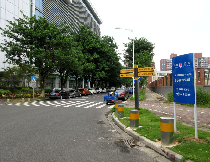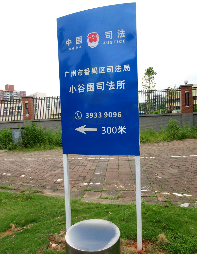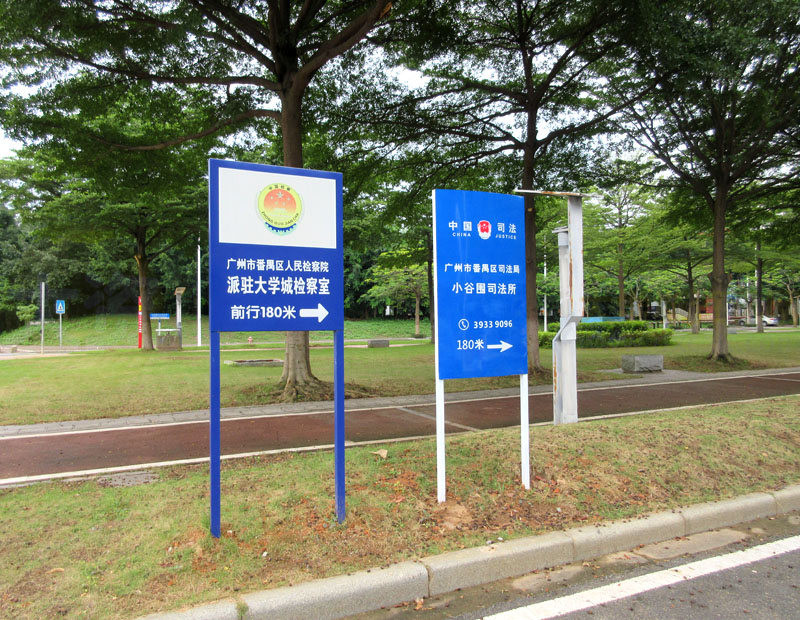 近日,注意到大学城南区多个路口显要位置,又立了一块新的牌子,是小谷围司法所的指引导向