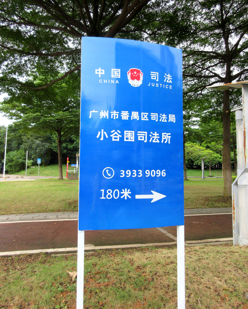 | 南区多个路段口近日新立了番禺区司法局小谷围司法所的指引招牌 | ||||||