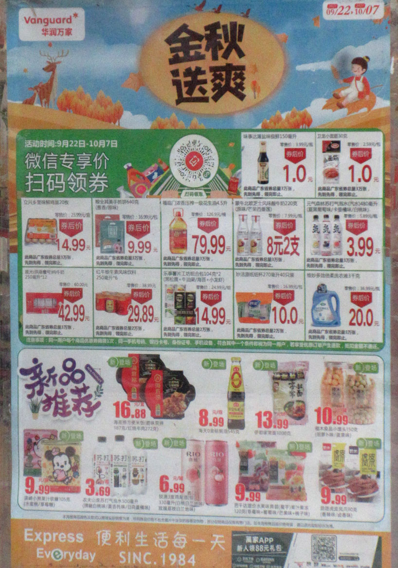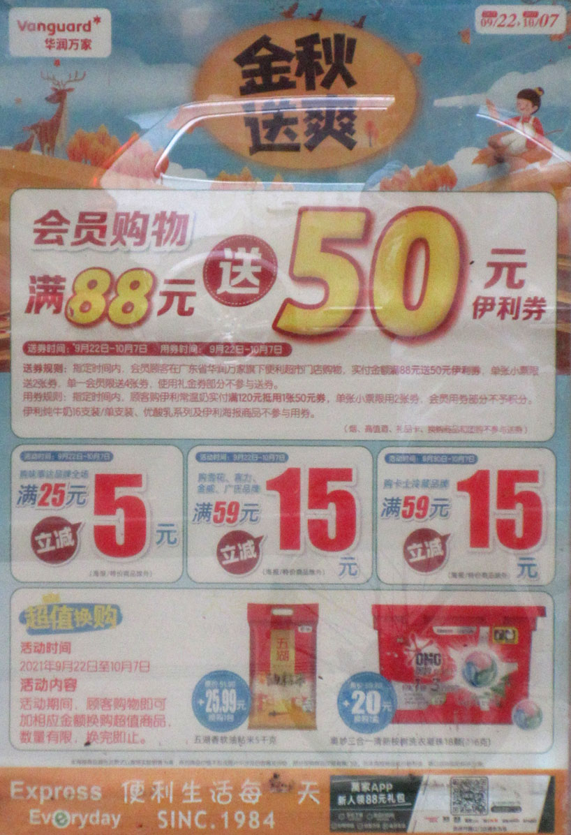 南区-星汇文宇-华润万佳 金秋送爽9.22-10.7会员购物满88元送50元伊利券 另有各种满减和已购加钱换购