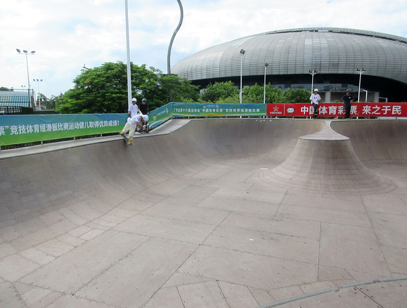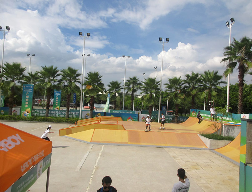街式场地这边现在还没比赛,参赛选手在进行热身练习 |