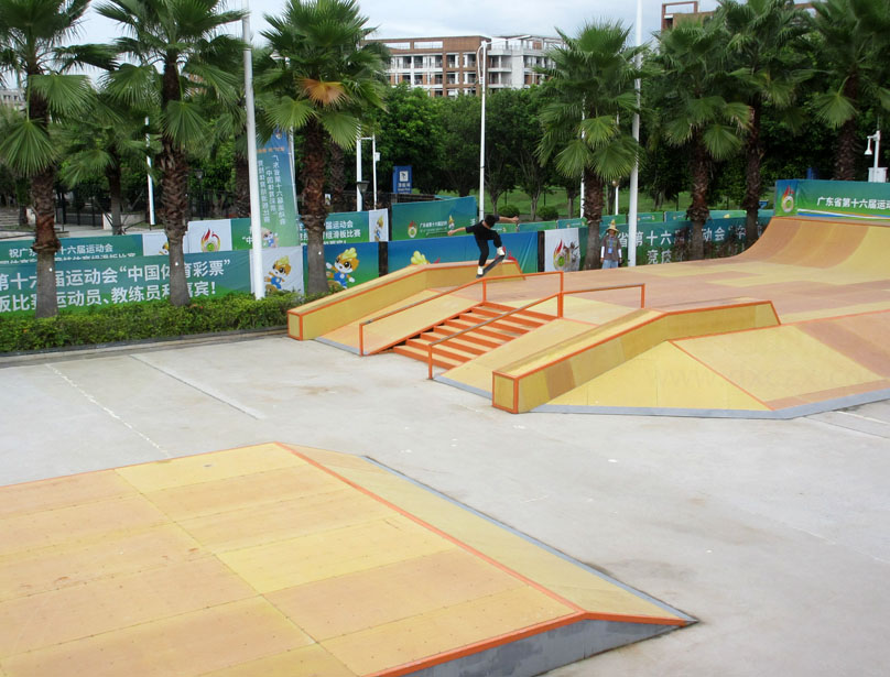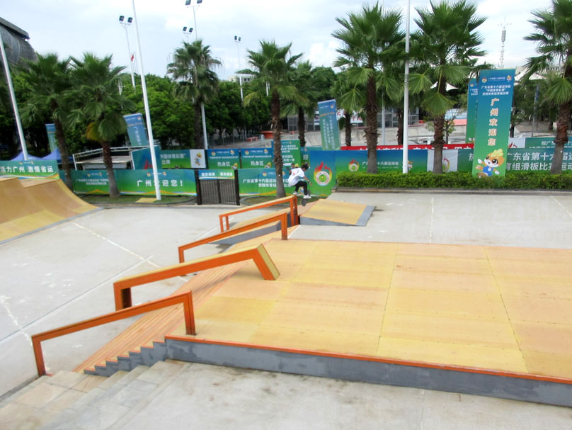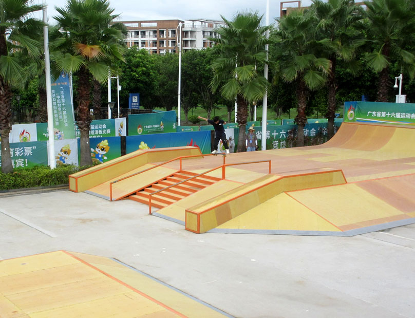 中心区滑板场进行的第十六届省运会体育竞技滑板比赛今天是男子两个组别碗池和街式的决赛 街式场地有些选手的发挥看着还是可算精彩的