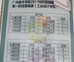 广美2017校际篮球赛之工业设计学院第一阶段赛程表