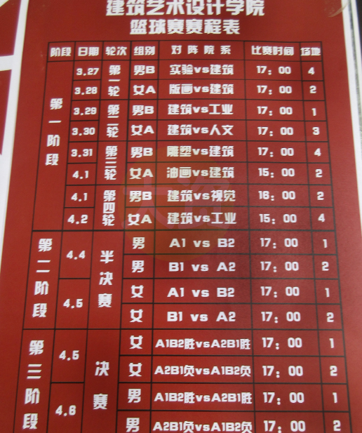 | 建筑艺术设计学院篮球赛赛程表 | ||||||