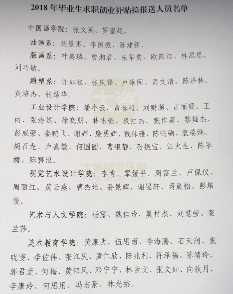 | 广州美术学院2018年毕业生求职创业补贴拟报送名单公示 | ||||||