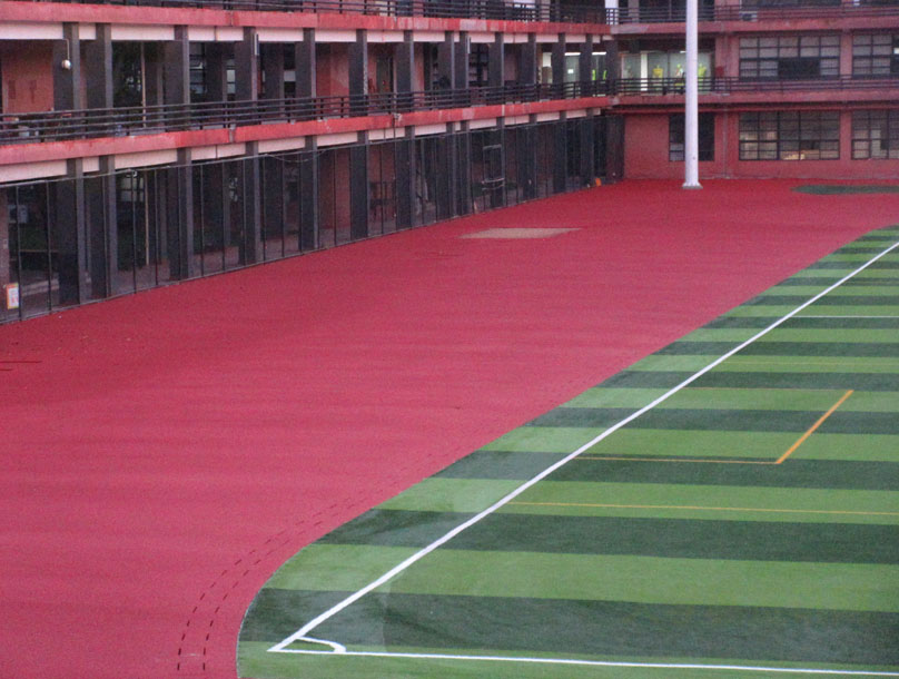 广美教学区田径运动场翻新重修是不是算已经基本弄好了 足球场人工草皮部分和环绕跑道及两半圆周边区域塑胶 都已铺筑好和覆盖涂色 好像就剩跑道划线和看台顶棚局部小首尾待完善