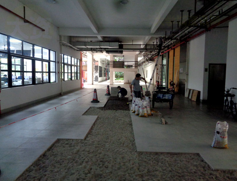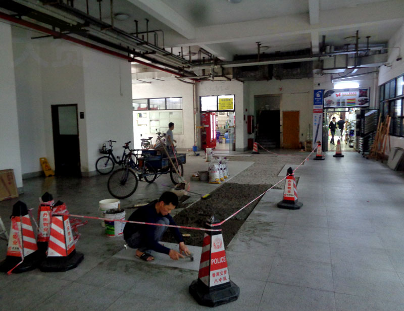 | 生活区宿舍1栋一楼架空层东侧正在更换修复地板砖 | ||||||