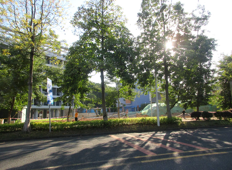 广美生活区北增地块新建宿舍楼外围边缘看到建起了似铁围栏高柱墩,这可不是什么好风气趋势啊,不知是否生活区旧的其它外围是否也会照此围建,本来目前广美生活区就按目前的周围边缘就很合理自然合适,要是真的建起类似那样的高围栏墙,那样广美往后也很难言美了,虽然名字上有个美字,毕竟学校范围本来就不大,再这样一围,感觉肯定挺憋,里外看都不舒服和自然,张牙舞爪的东西从来跟美感没关系,广州大学城当年这么先进的建设理念体系,都快被这两三年多来各校先后建围墙所淹没了,回到两三年以前的过去十五六年里,跟现在比较看,真是无法想象,感觉是拖回了旧时代,开倒车的做法