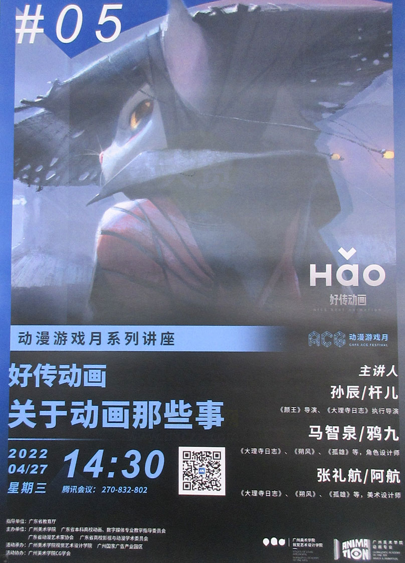 | 动漫游戏月系列讲座·好传动画-关于动画那些事 2022.04.27周三下午14点30分 线上观看 | ||||||