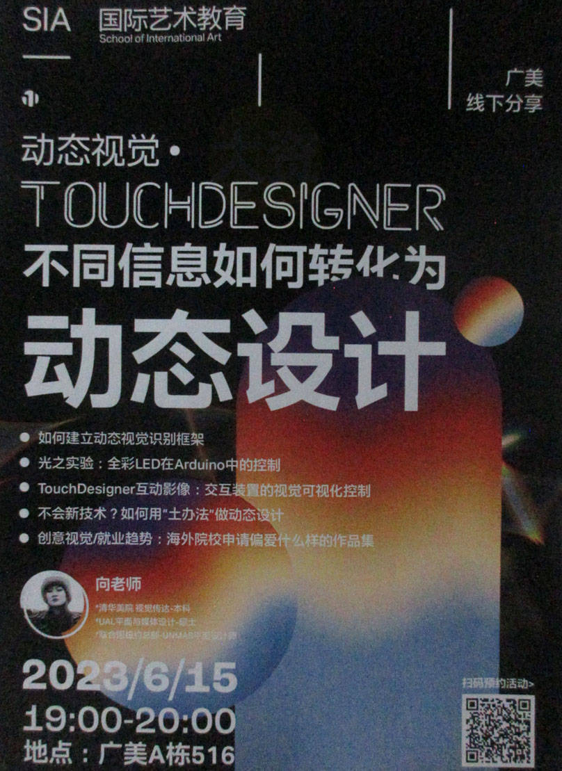 线下分享会·不同信息如何转化为动态设计 2023.06.15周四晚19点-20点 教学区A栋516 |