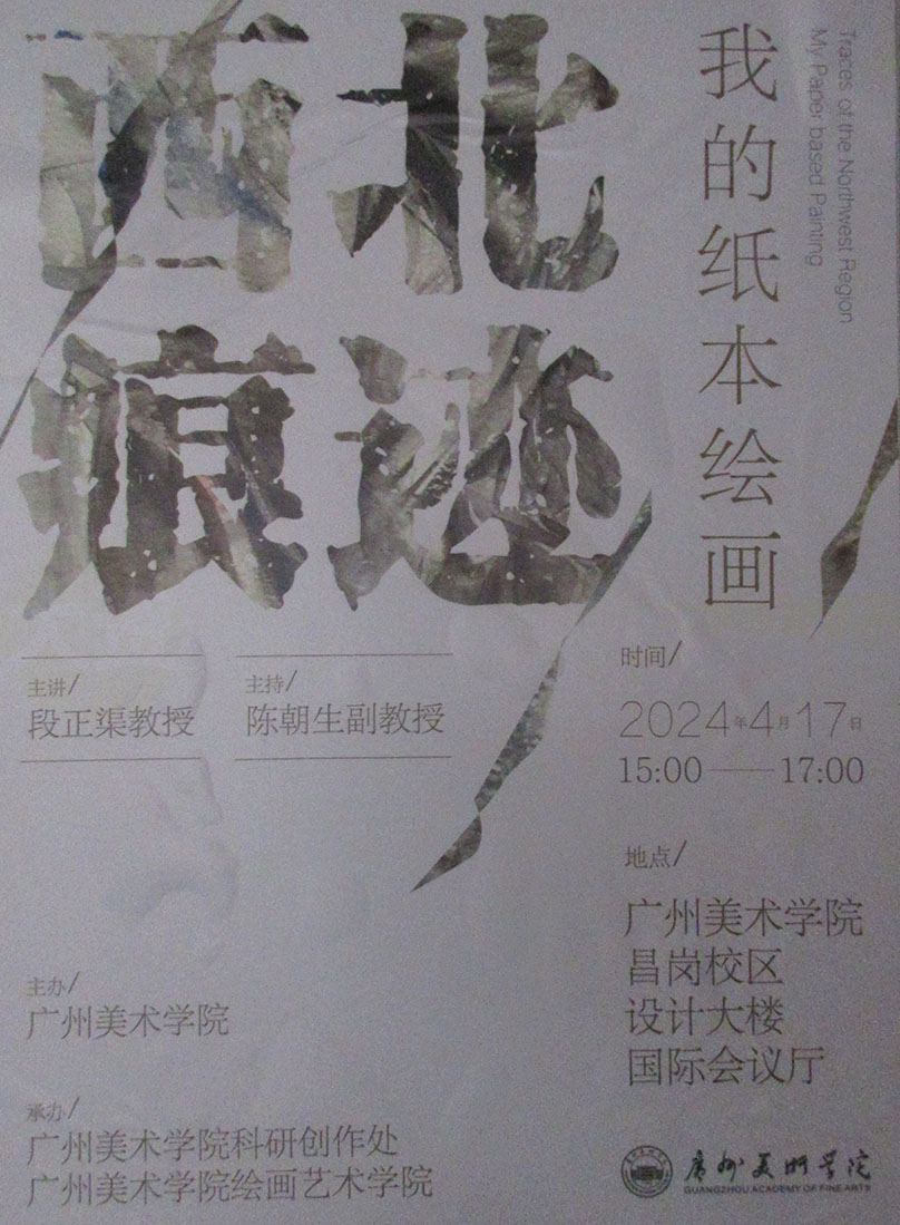 西北痕迹·我的纸本绘画-讲座 2024.04.17下午15点-17点 广美昌岗校区-设计大楼国际会议厅 主讲-段正渠 |