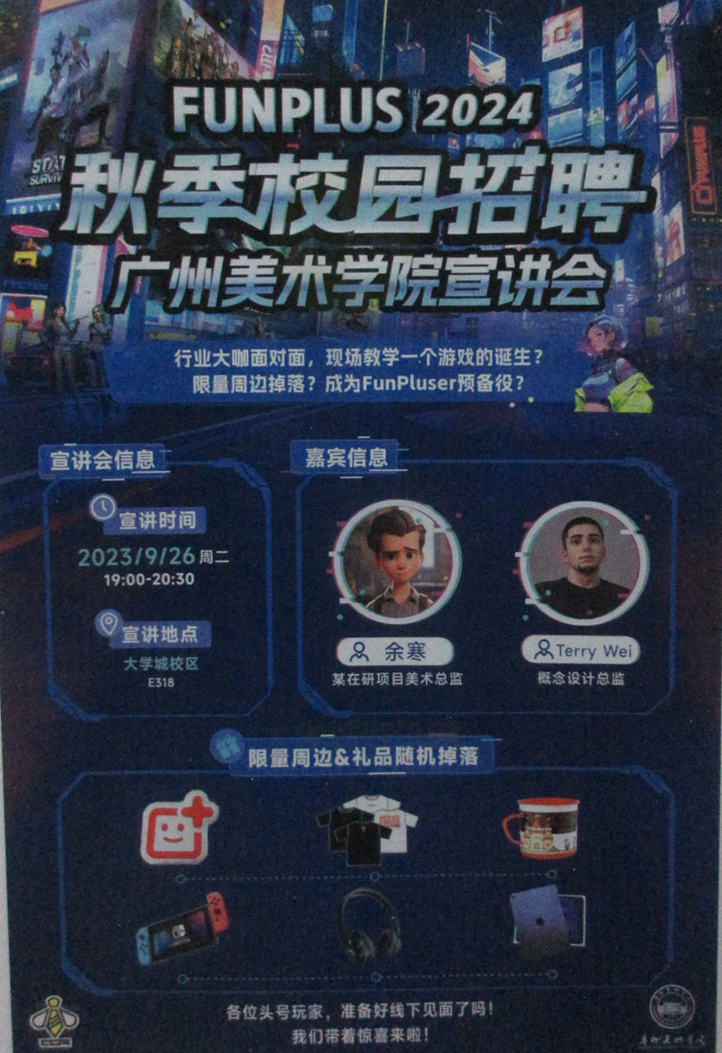 FUNPLUS 2024秋季校园招聘 广美宣讲会 2023.09.26周二晚19点-20点30 教学区E318 |