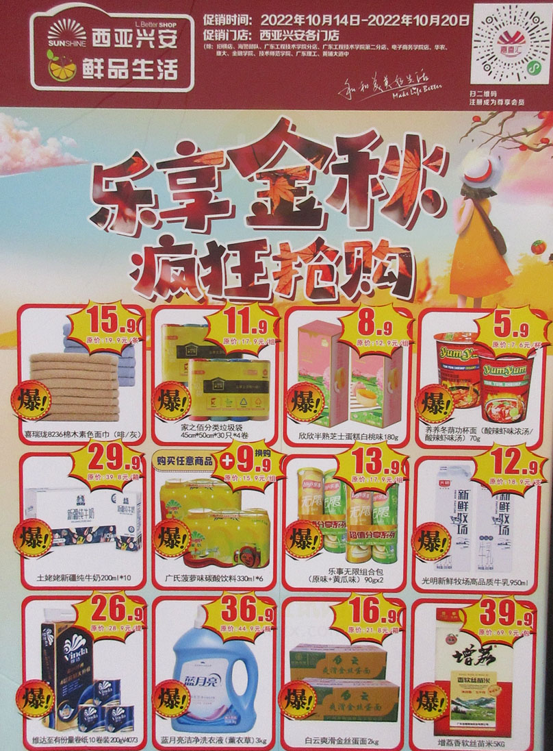| 广美生活区宿舍1栋一层西南 西亚兴安超市 乐享金秋,疯狂抢购 2022.10.14-2022.10.20 | ||||||