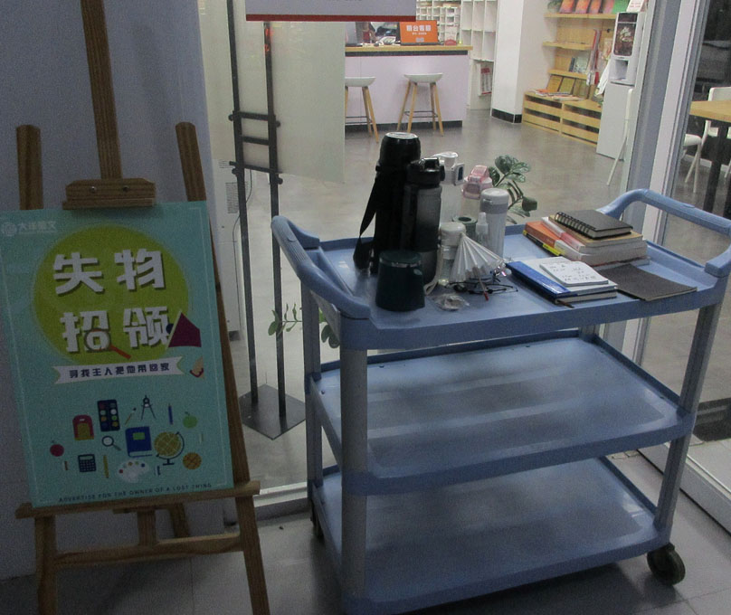 | 生活区1栋一楼 大洋图文打印店前 专门摆放了个失物招领点 | ||||||