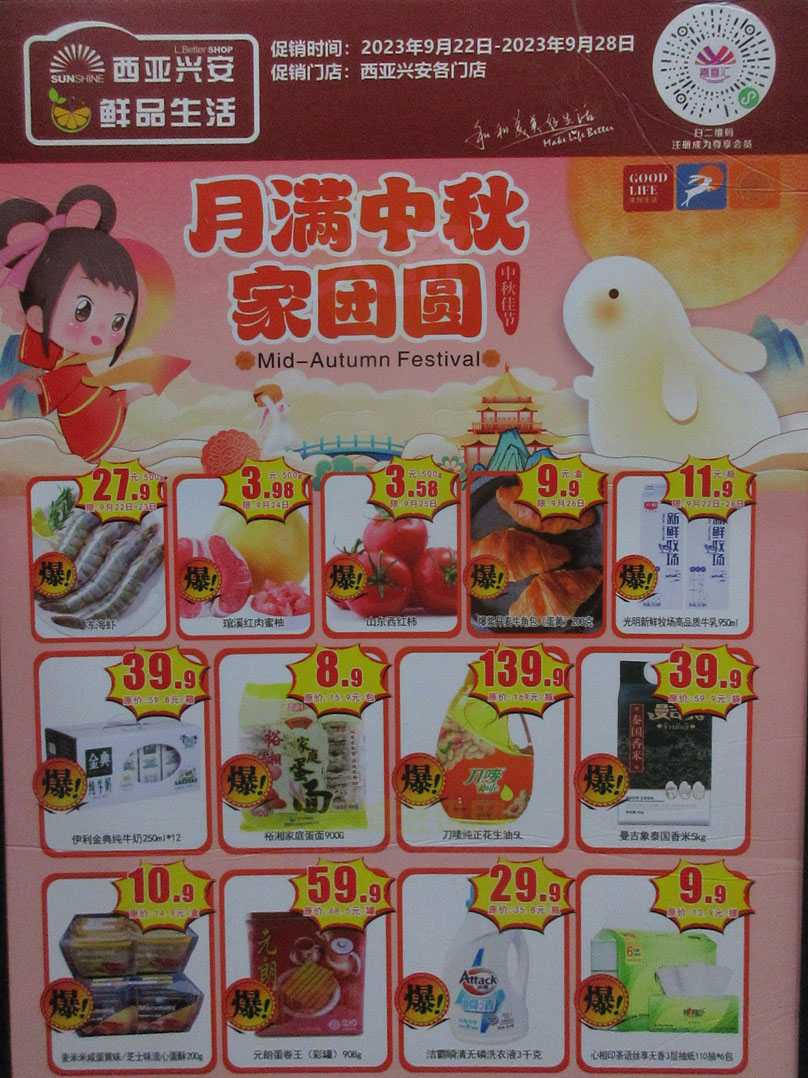 广美生活区1栋一层 西亚兴安超市 中秋节前夕 9.22-9.28 特价优惠资讯
