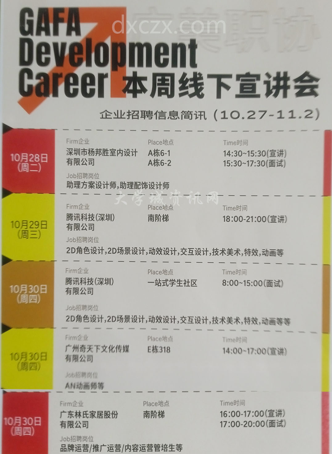 ![]() 广美·2025.10.27-11.02本周校园招聘线下宣讲会预告 |
