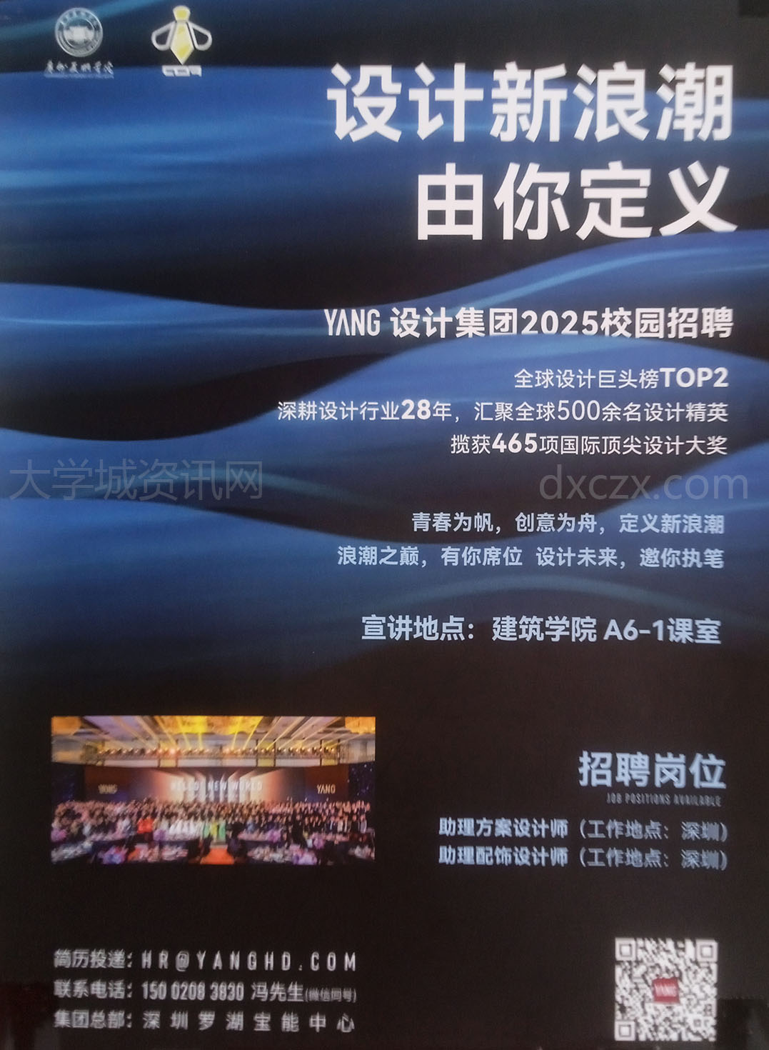 ![]() 广美·YANG设计集团校园招聘 宣讲地点:建筑学院A6-1课室 |