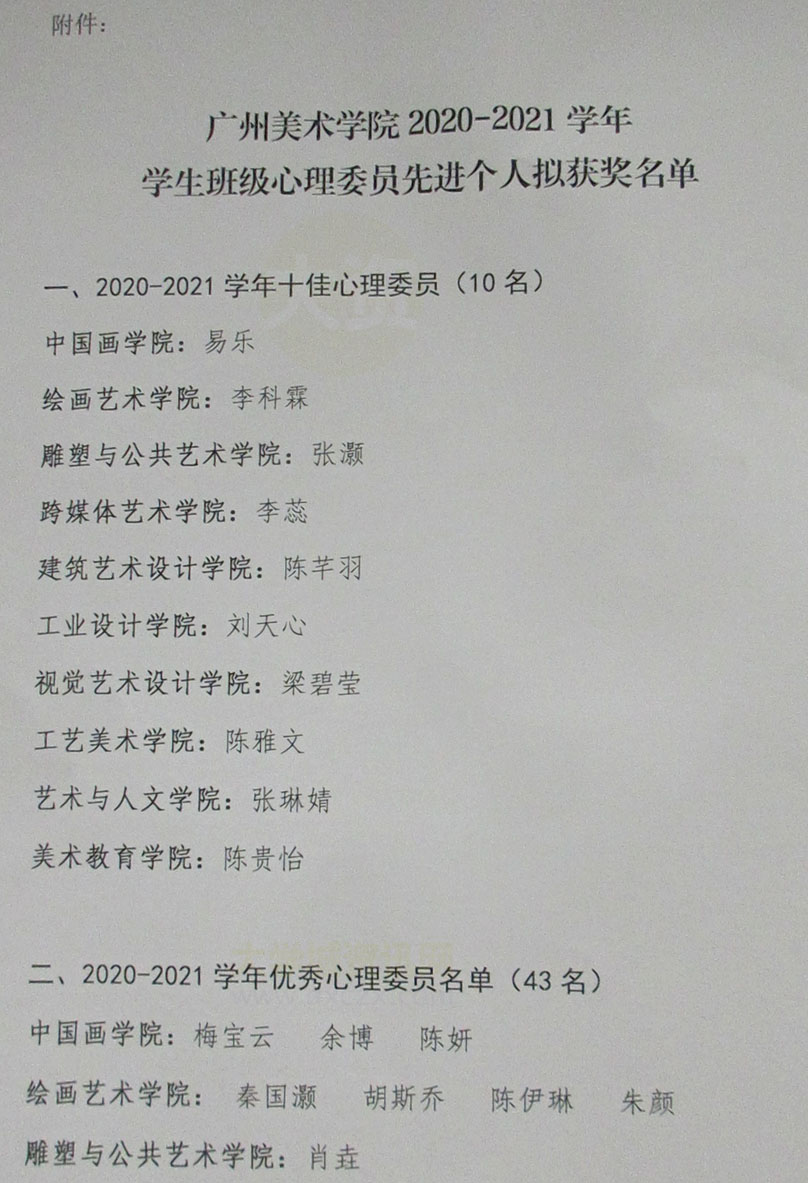 | 广美2020-2021学年学生班级心理委员先进个人拟获奖名单公示 | ||||||