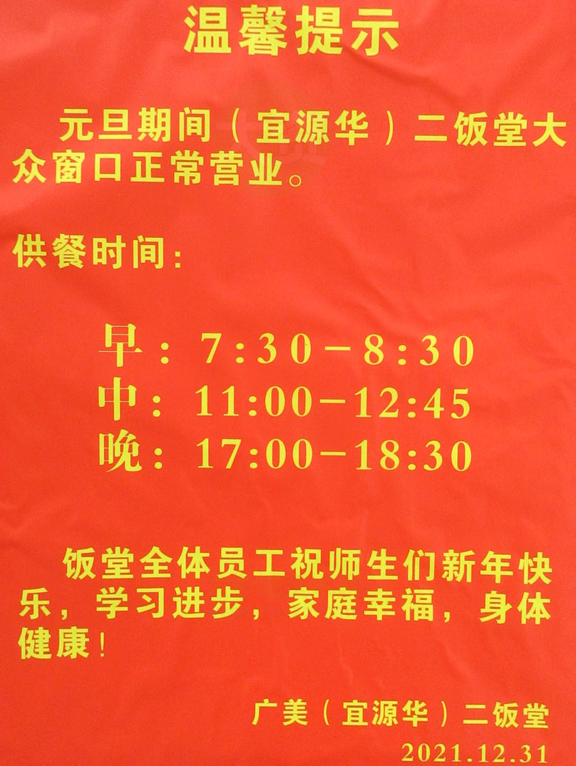 | 元旦期间饭堂二楼大众窗口正常营业 早中晚供餐时间详见 | ||||||
