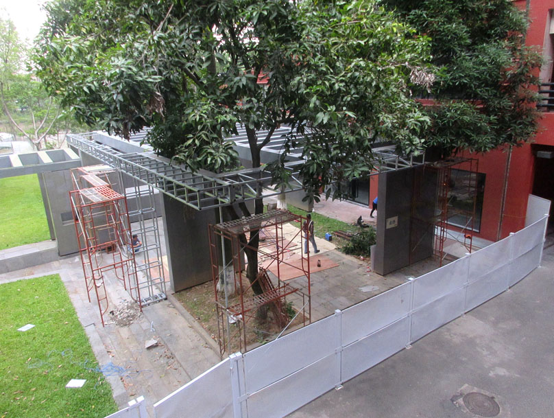 | 教学区这个南北阶梯教室之间之前已经是升级优化建设好了的场景布构 最近看到似又在重新加装修改造或进一步完善 | ||||||