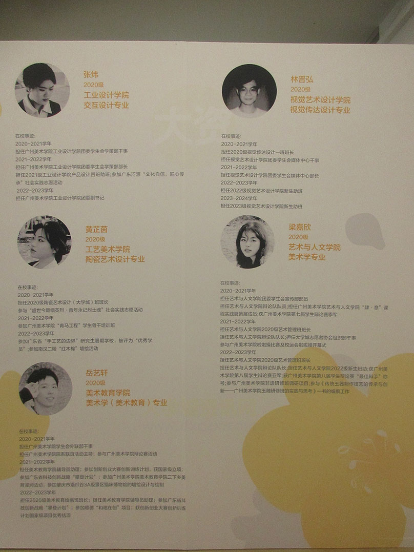 | 广美生活区-体育馆西侧-新松园 11.29开始 有一个主题为花开有声的广美本科国家奖学金获得者学生作品汇展 | ||||||