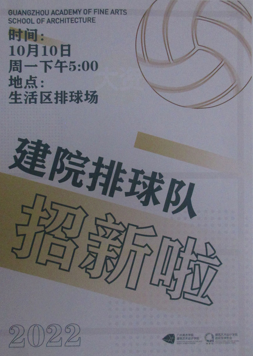 | 广美·建筑学院排球队招新 2022.10.10周一下午5点 生活区排球场 | ||||||