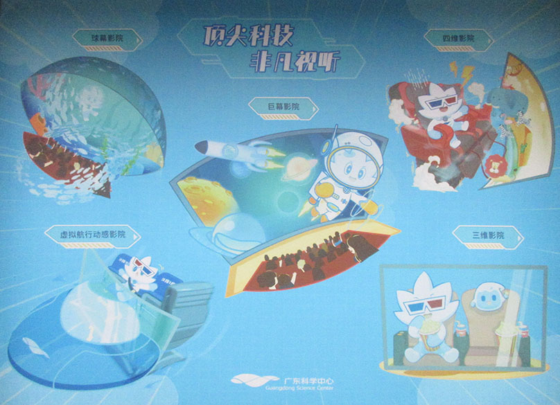 | 科学中心五大科技影院分别是球幕、巨幕、三维、四维、虚拟航行 | ||||||