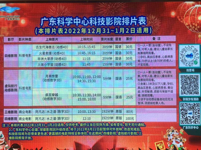 广东科学中心2023元旦假日期间(2022.12.31-2023.01.02) 科技影院排片放映安排 |