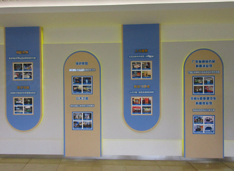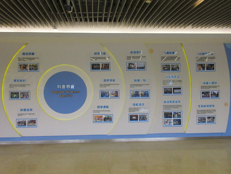 科学中心一楼&科学之眼大厅以北 游客休息区西侧墙面最近新装饰了关于科学中心的各个展馆讯息、以及各种科普相关活动展示、还有服务内容的介绍提示